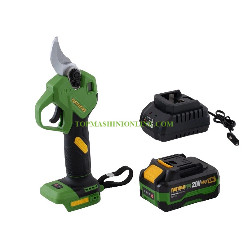 Акумулаторната градинска ножица PARTNERRO PP-FE3A 20 V с безчетков мотор е удобно средство за рязане без усилие на лозови пръчки, клони, храсти, цветя. Максималния диаметър на рязане е Ø 30 мм. Вграденият дисплей показва броя на срезовете и нивото на батерията, което позволява лесен контрол по време на работа.