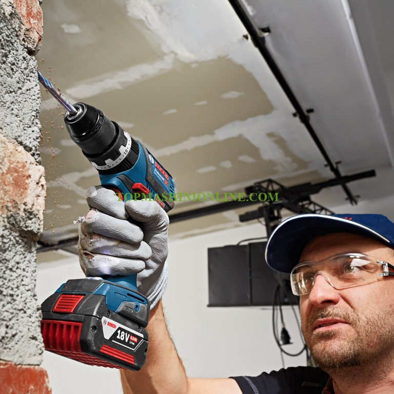 Акумулаторен ударен винтоверт Bosch GSB 18V-60 C с 2 батерии 18 V, 5 Ah изарудно устройство в куфар е с мощен 60 Nm въртящ момент и безчетков EC мотор за ефективност, издръжливост и компактност. Функцията ударно пробиване позволява направата на отвори в зидария до 13 мм. Компактният уред e с ергономичен захват и с малка дължина на главата 189 см. Чрез допълнителния модул за свързване GCY 30-4 (продава се отделно) и безплатното приложение Bosch ToolBox винтовертът може да се управлява и конфигурира през смартфон. Това приложение дава достъп и до „TrackMyTools“ и „Measuring Master App“ за документиране на измерени стойности и съществуващите функции на приложението. Доставя се в комплект с 2 батерии 18 V, 5 Ah, бързозарядно устройство и вложки за инструмент за куфар L-BOXX.