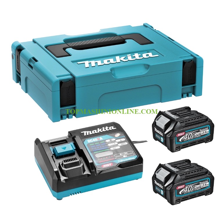 Комплект акумулаторни батерии и зарядно устройство 40 V, 2.5 Ah Makita 191J81-6 пвключва 2 броя литиевойонни батерии BL4025 и зарядно устройство DC40RA в куфар MAKPAC Type 1, подходящ за всички модели Makita XGT.
