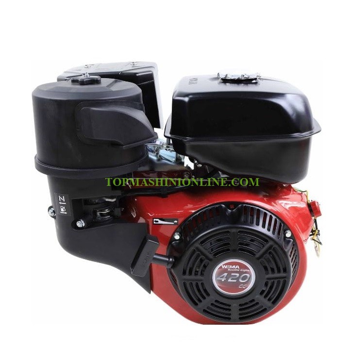 Бензинов двигател с вал на шпонка 25.4 мм Weima WM190F/P-2 е с 4 - тактов, бензинов, едноцилиндров с въздушно охлаждане двигател с мощност 16 конски сили при 3600 об/мин и обем 420 куб.см, резервоар 6.5 литра, дължина на вала 72 мм, разход 0,395 литра на kW на час. произход Китай.