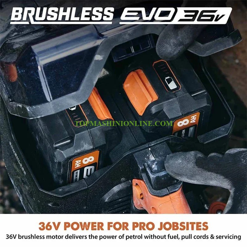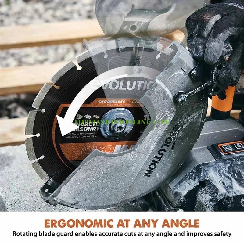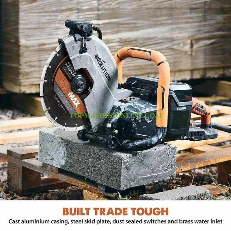 Акумулаторна отрезна машина за бетон Evolution R260DCT-Li 36 V се захранва с 2 батерии 8 Ah с напрежение 18+18 V. Създаден е за професионалисти и предлага автоматично подаване на вода за намаляване на праха и впечатляваща дълбочина на рязане от 100 мм – на нивото на много 12" модели. Компактен и мощен, той осигурява водещи в индустрията разрези на един заряд благодарение на премиум диамантения диск, специално предназначен за безжично рязане, и мощния 36 V безчетков мотор. Този безжичен фугорез може да реже тухли, бетонни плочи, метал и други материали, предоставяйки отлично съотношение цена/качество. Комплектът е готов за употреба и включва две висококапацитетни 8Ah батерии и бързо зарядно с два порта. За потребители, които вече използват платформата EXT.