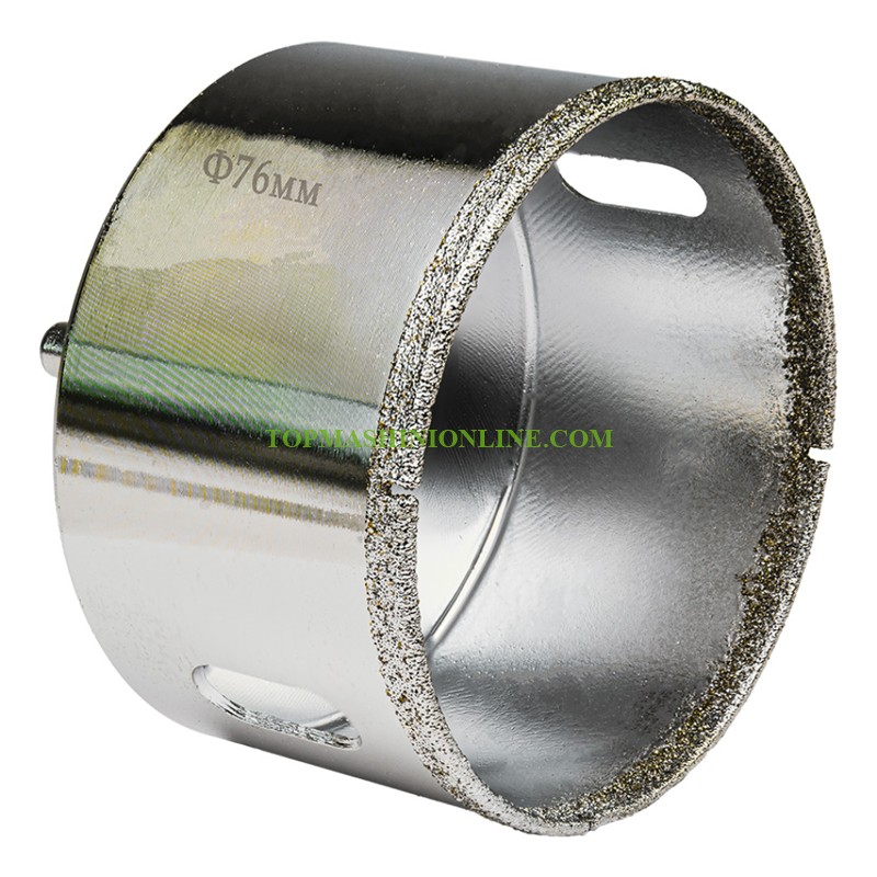 Диамантена боркорона Raider Pro 157784 с диаметър 76 мм и страничен отвор за по-добро охлаждане е направена от въглеродна стомана, а режещата част разполага с диамантено покритие с висока ефективност и точност на срязване. Тя е изключително подходяща за отвори от меки стенни плочки до твърди подови плочки(гранитогрес).
