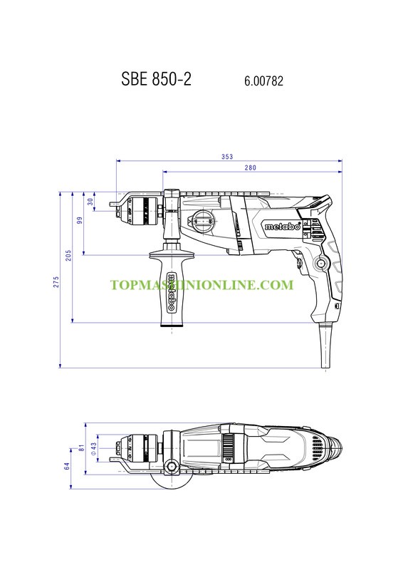 Ударна бормашина Metabo SBE 850-2 SSBF е с мощност 850 W. Бормашината Metabo SBE 850-2 SSBF е с Metabo Marathon мотор с патентована защита от прах, Metabo S-automatic предпазен превключвател, Vario (V) електроника за регулиране на оборотите в зависимост от обработвания материал. Предваритлен избор на оборотите, шпиндел с вътрешен шестостен за директно поставяне на битове, ляв- десен ход.