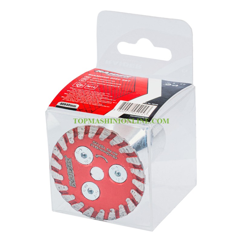 Диамантен диск Raider 162120 с диаметър 40 мм е подходящ за обработка на различни материали като керамика, камък и метал. Независимо дали работите по ремонтни дейности, декоративни проекти или прецизни технически операции, той ще ви помогне да постигнете професионални резултати. Благодарение на своя ултратънък профил от едва 1.8 mm и диаметър Ø40, той позволява изключително чисти срезове и фина обработка, което го прави идеален избор за детайлна гравировка и прецизно довършване. Дискът разполага с висококачествено диамантено покритие, което гарантира висока издръжливост и дълъг експлоатационен живот дори при интензивна работа. Това покритие подобрява ефективността на рязане и осигурява постоянни резултати във времето, като същевременно намалява нуждата от честа подмяна.