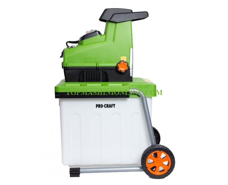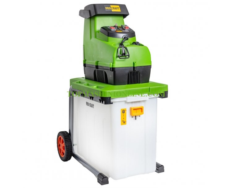 Електрическа клонотрошачка с кош за отпадъци 55 литра Procraft PSL2800 с мощност 2800 W е подходяща за раздробяване на клони и градински отпадъци с максимален диаметър 44 мм. Дробилка за клони Procraft PSL2800 2800 W е оборудвана с кош за отпадъци с вместимост 55 литра изработен от пластмаса с висока якост, колела за лесно транспортиране, стабилна рамка, термична защита, здрава и стабилна конструкция. Системата за рязане на Procraft PSL2800 е направена от издръжливи метални остриета. Дробилката има ниско ниво на шум, защита от претоварване на двигателя и ножове изработени от закалена стомана.