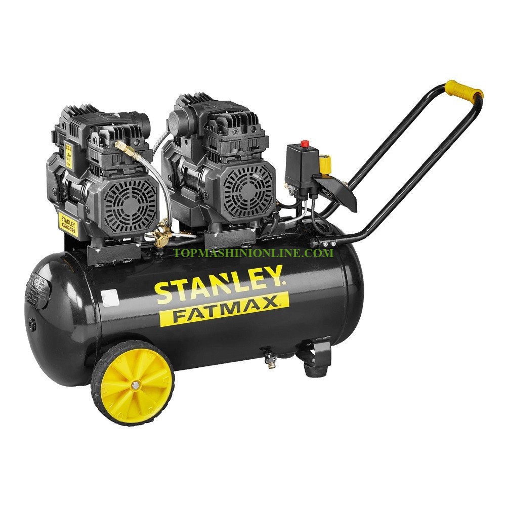 Безшумен безмаслен компресор Stanley FMXCMS3050HE с вместимост на съда 50 литра, мощност 1.1 + 1.1 kW, 1.5 + 1.5 НР, дебит 320 л/мин, максимално работно налягане от 8 бара е с два ултра тихи помпи, предназначен за по-интензивна употреба и по-голямо количество сгъстен въздух. Конструкцията на дръжката и шасито осигурява удобно управление и стабилност. Подходящ е за пръскане и нанасяне на боя, за работа с такери, издухване, надуване, за лабораторни цели и др.