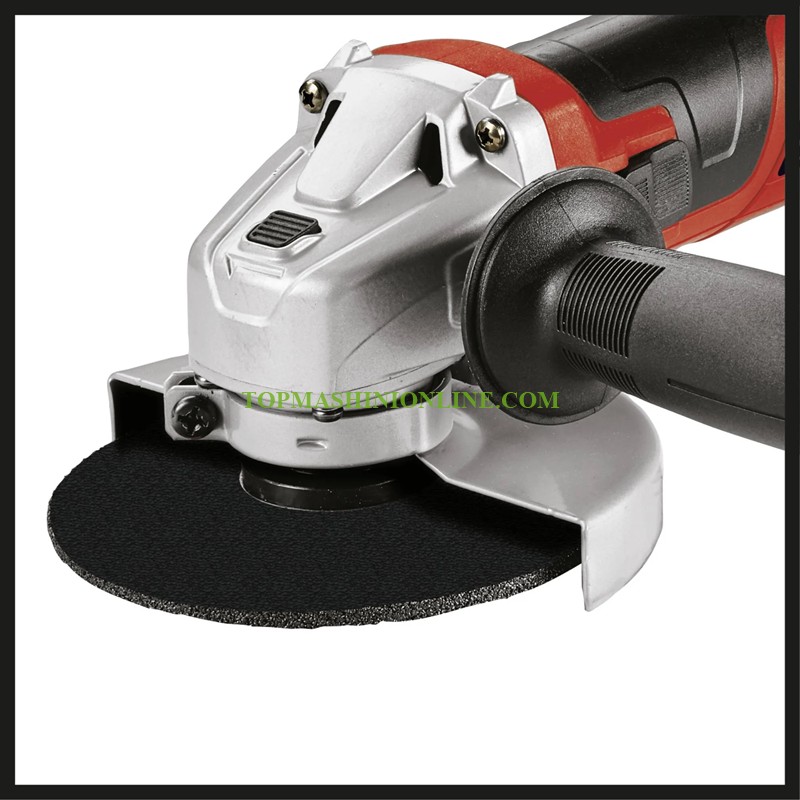 Електрически ъглошлайф с диаметър на диска 125 мм Einhell TC-AG 125/850 Kit е с мощност 850 W, максимална дълбочина на рязане 33 мм и обороти 12000 мин-¹. Предпазителят на диска осигурява повишена безопасност на потребителя. Безопасната работа се осигурява от защитата срещу повторно стартиране. Блокировката на шпиндела позволява лесна и удобна смяна на инструментите. Металната глава на зъбния механизъм осигурява гъвкава работа. Допълнителната дръжка може да се монтира в две позиции, което позволява комфортна употреба във всяка ситуация. Доставя с 3 бр. дискове за метал, 1 бр. ламелен диск, практична чанта