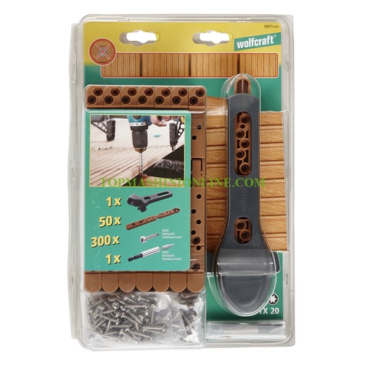 Комплект съединител за декинг Wolfcraft 6971000 е интелигентна система за свързване на дървени тераси ви позволява да съедините дъските на терасата си, използвайки невидими крепежни елементи. С този метод не само получавате висок клас, безупречен външен вид, но и инвестирате в дълготрайността на новата си дървена тераса. В допълнение към калибра за пробиване и закрепване, комплектът съдържа също 50 сглобки и 300 винта Torx® TX 20 от неръждаема стомана, магнитен държач за битове и съвместимия бит Torx® TX 20 от неръждаема стомана. Калибърът за пробиване и закрепване елиминира всички усилия при позиционирането на сглобките. Сглобките създават разстояние между гредите на терасата и дъските на терасата. Това предпазва от намокряне по-късно и осигурява оптимална вентилация. Това ще означава непрекъснато ползване на вашата дървена тераса в продължение на много години. Винтовата връзка се прави невидимо от долната страна на дъската с помощта на сглобките. Това означава, че няма повече срязани винтове или напукани дъски на терасата. Монтажът е лесен и прецизен, тъй като този комплект съдържа всичко необходимо за перфектно положена тераса. Можете да сте сигурни в резултат, който ще отговаря на най-високите стандарти.