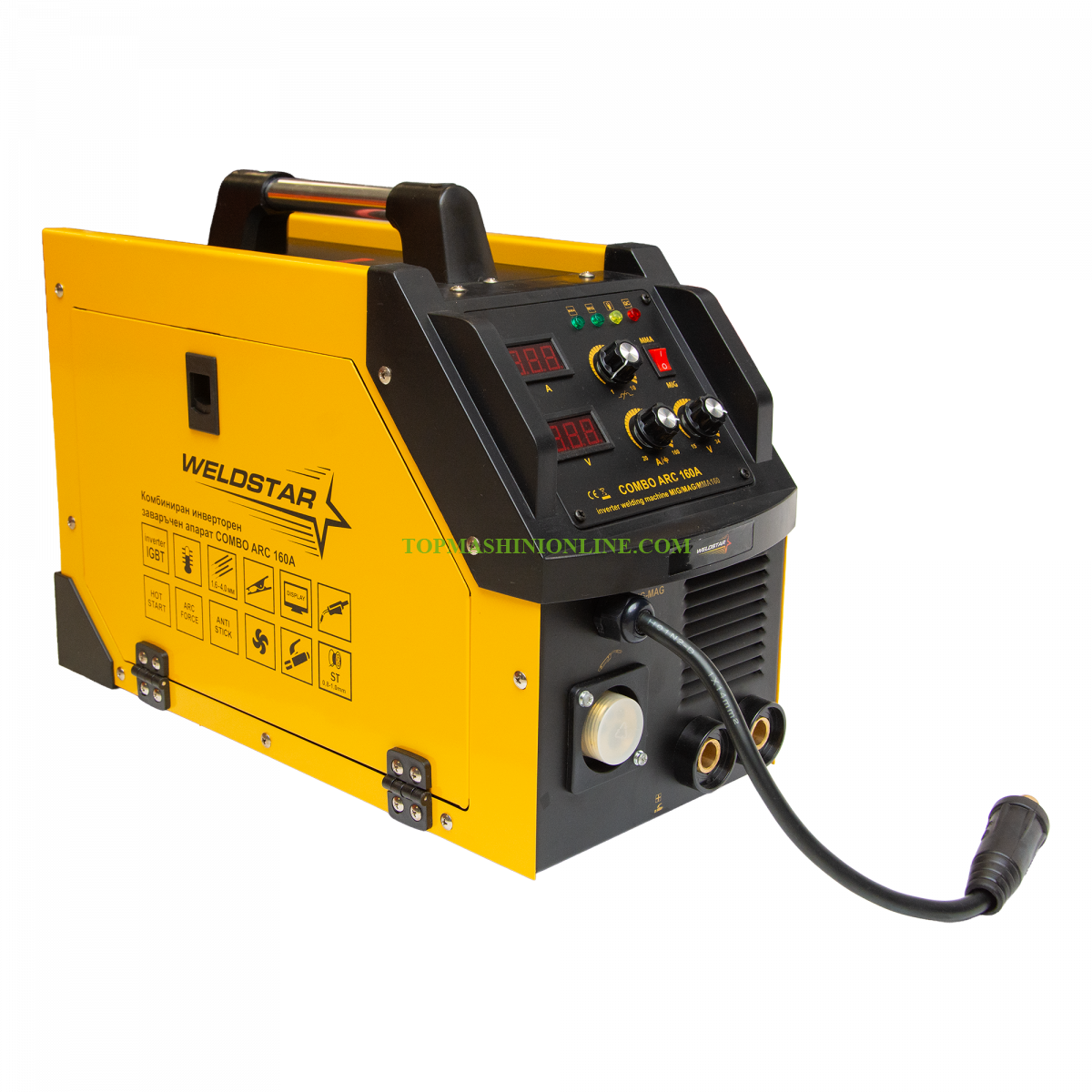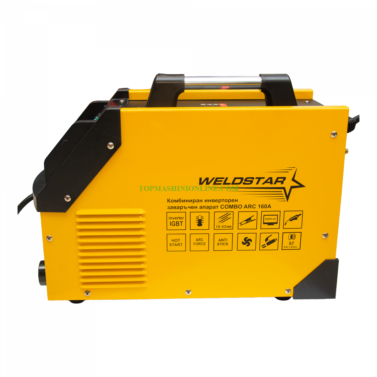 Инверторен заваръчен апарат с вградено телоподаващо Weldstar COMBO ARC 160 е със заваръчен ток 20-160 ампера. Работи с електроди 1.0-4.0 мм и тел 0.8-1.0 мм.