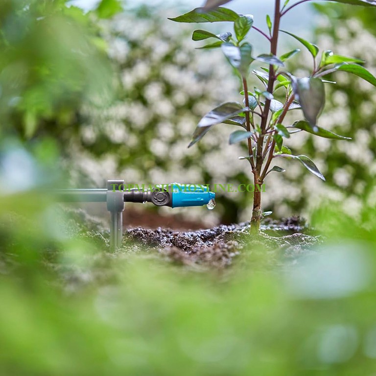 Регулируемата крайна капкова глава на Gardena е идеална - като част от системата Gardena Micro-Drip-System - за точково напояване на единични растения или по-дълги редове от растения с различни нужди за поливане. Количеството на подаваната вода може да се регулира между 0 и прибл. 20 литра на час. Махащият се кожух има вградена почистваща игла за лесно почистване при замърсяване на капковата глава. При напояването на единични растения, крайната капкова глава се завива на края на водоподаваща тръба (3/16 цола). С помощта на инсталационния инструмент (арт. № 8322-20) свързващата тръба 13 мм (1/2 цола) може да бъде разпробита и крайната капкова глава да бъде монтирана директно. Включени са десет регулируеми крайни капкови глави.