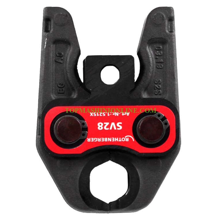 Пресовъчни клещи за фитинги контур V с обхват 28 мм Rothenberger Standard SV 28 015215 X са изработени от кована специална стомана с висок коефициент за натоварване. Имат дългосрочна защита от корозия, а това е перфектното решение при работа на строителната площадка в тежки условия. Стандартна пресова челюст Rothenberger Standard SV 28 015215 X 28 мм има отлично качество и е приложима за системите на различни производители за системно пресоване на фитинги, изработени от метални или пластмасови системи. С използването на специален процес на втвърдяване, технологията DURA LAZR TEC и частичното лазерно втвърдяване, прецизното и безопасно пресоване са възможни с едновременно увеличаване на издръжливостта. Резултатът е минимално износване и 100% повече цикли на пресоване в сравнение с предишния модел. Освен това, дългосрочната защита от корозия поддържа дълголетието на челюстите на пресата. С използването на специална стомана за тежък режим, пресните челюсти са подходящи за всички машини за пресоване с аксиална тяга 32 - 34kN.