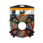 Квадратна корда за моторен тример Stihl CF3 Pro е с диаметър 3.0 мм и дължина 45 метра. Тя е изработена от 3-компонентен материал със специален полиамиден състав, което спомага за по-дългия й експлоатационен живот. Черният компонент е с допълнителна армировка от въглеродни влакна. Кръстовидната форма гарантира по-добра производителност при косене и чисти краища на окосената площ. Благодарение на технологията на усукване шумът, който се образува по време на косене, е много по-тих.