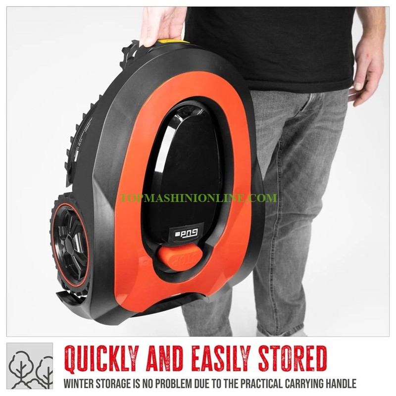 Акумулаторна градинска роботизирана косачка за трева Gude GRR 180.1 с 1 батерия 28 V, 2 Ah е революционно нов начин за грижа за вашата морава. Разполага с множество сензори за препятствия, дъжд, наклон и повдигане, отделни мотори за рязане и движение, PIN код защита срещу кражба и LCD дисплей за настройка на работното време. Регулируемата височина на рязане (20–60 мм) и трите ножа осигуряват перфектно подрязана морава. Косачката е подходяща за площи между 50 и 600 m² и може да се справя с наклони до 20°. Комплектът включва: косачка робот, зарядна станция с кабел, 6 винта за заземяване на зарядната станция, 100 м ограничителен кабел, 150 щифта за кабела, 4 конектора, 6 резервни ножа и 2 адаптерни щепсела. След еднократна настройка можете да се отпуснете и да се отпуснете, знаейки, че градината ви ще бъде перфектно поддържана. С помощта на усъвършенствана технология, тази роботизирана косачка ви спестява време и осигурява красиви резултати. Тя коси моравата ви безопасно и ефективно, като се движи без усилие през градината ви и осигурява постоянна, професионално изглеждаща грижа за тревата. Тя може да достигне дори до труднодостъпни места, за да постигне най-добрите възможни резултати. Освен това, роботизираната косачка може да се справи с неравен терен и склонове, което прави поддръжката на градината бърза и лесна. Друго предимство е почти безшумната ѝ работа и нулевите емисии. Това означава, че вашата градина не само ще изглежда красива и подредена след косене, но и ще помогне за опазването на околната среда Роботизираната косачка за трева е идеалното решение за бърза и ефективна поддръжка на градината. Забравете досадната задача за косене с традиционна косачка за трева и се потопете в свят на комфорт и удобство.