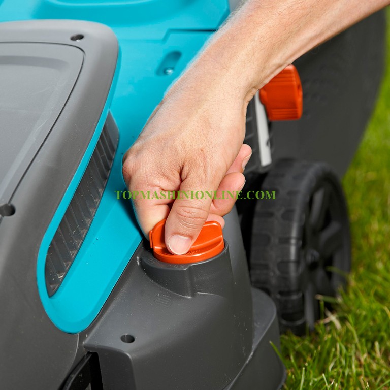 Електрическа косачка GARDENA PowerMax™ 1200/32 с мощност 1200 W, ширина на косене 32 см, кош 30 литра е изключително подходяща за по-малки площи или като стартов модел. Благодарение на мощния двигател PowerPlus дори висока или мокра трева може да бъде окосена лесно и бързо. По време на работа отрязаната трева се събира в кош, а големият му отвор гарантира опростено и бързо изпразване. Желаната височина на косене може да бъде регулирана на пет степени с ръкохватка и скала, на която височината лесно се вижда. Превключвателите са разположени на удобно място и прилягат леко в ръката.