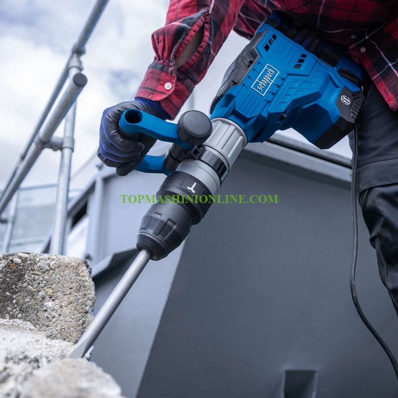 Електрически къртач Scheppach AB2000 със своите 60 джаула ударна енергия и мощен 1700-ватов мотор, е идеален за взискателни разрушителни работи или пробиви в бетон, камък или зидария. Патронникът SDS-Max позволява лесна смяна на бургията без инструменти. Регулируемата честота на ударите, варираща от 200 до 2100 удара в минута, позволява настройването на чука за всякакъв материал. Доставя се в комплект с остри и плоски длета, шестостенен ключ, грес и резервни графитни четки, всичко това поместено в куфар с колелца.