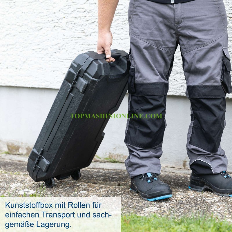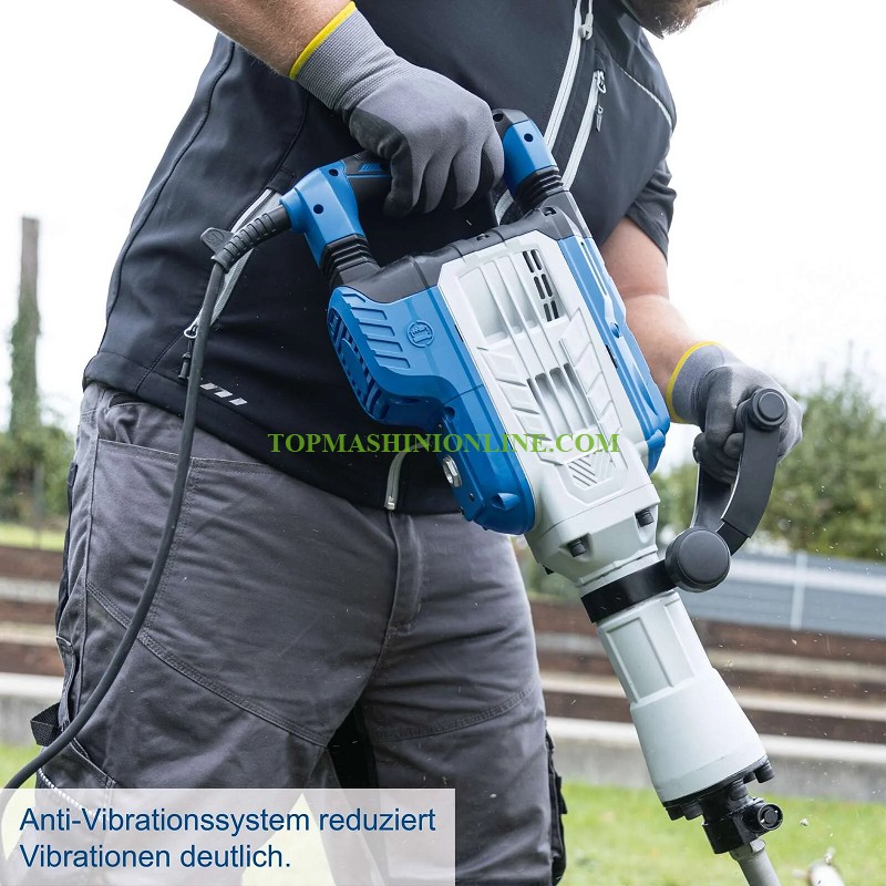 С електрически къртач Scheppach AB1950 с мощност 1900 W, честота на ударите 2000 мин-¹ и енергия на удара 60 J, разрушаването на стени, премахването на подови плочки или разбиването на основи, камъни и бетонни блокове е детска игра за всеки майстор, независимо дали е у дома или на строителна площадка. Благодарение на компактния и тънък дизайн, работата на труднодостъпни места е възможна. Вместо ръчна работа с чук и длето, длетото на чука за разрушаване пробива в материала, който трябва да се отстрани, и го раздробява. Това значително намалява физическите усилия, необходими за разрушаване, правейки работата по-бърза и по-ефективна. Високото тегло на машината подпомага този процес, тъй като позволява генерирането на по-голямо налягане. С тегло от 16,5 кг. къртачът практически се забива в земята сам. Смяната на инструментите е бърза и лесна, без да се изискват допълнителни инструменти, благодарение на бързоосвобождаваща се скоба. Двете дръжки с меко захващане осигуряват сигурно захващане на къртача, дори при продължителна употреба. Предната дръжка може да се регулира според индивидуалните нужди с помощта на заключващ винт. Задната D-образна дръжка не само насърчава ергономичната позиция на ръката, но и улеснява изваждането на къртача от развалините на земята. Оборудван е с 30 мм шестоъгълен държач за инструменти. Доставя се с плоско и остро длето в пластмасов куфар с колелца за транспортиране и правилно съхранение.