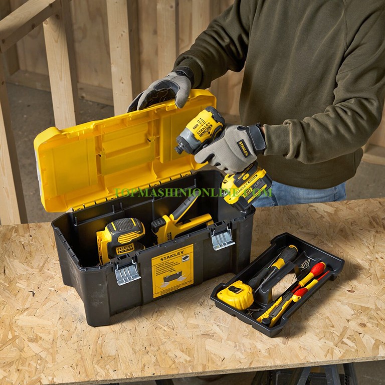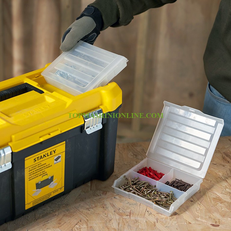 Пластмасов куфар за инструменти Stanley STST75787-1 с размери 490x285x255 мм и максимална товароносимост 8 кг е предназначен за съхранение на ръчни и по-малки електрически инструменти. Разполага с подвижна тава за съхранение на малки части, както и горно отделение за съхранение на малки винтове и шайби. Двата подвижни органайзера осигуряват бърз и лесен достъп до крепежни елементи и аксесоари. Двете метални закопчалки са устойчиви на ръжда. За по-голяма сигурност е предвидена възможност за заключване на куфара с катинар.