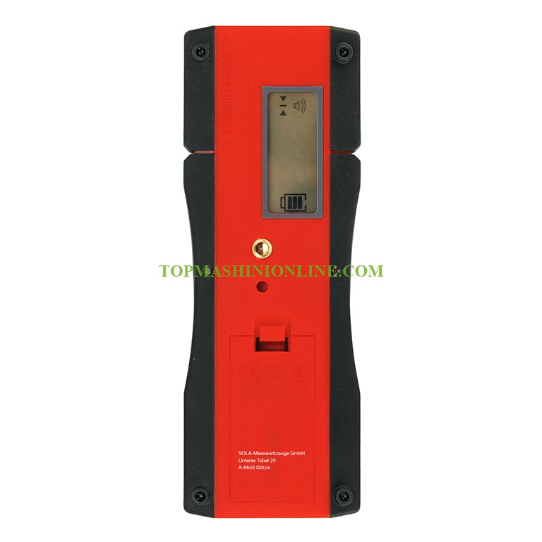 Лазерен приемник за лазерен нивелир с обхват 80 м Sola REC LGD0 с два LCD дисплея за удобна работа и с 2 либели - хоризонтална и вертикална. Точността му може да се задава в границите от ±0.5 до ±2 мм. От горната страна има магнит за закрепване към метални повърхности. След определен период на неактивност се изключва автоматично. Степен на защита IP54. Доставя се с държач и 1 батерия 9 V.