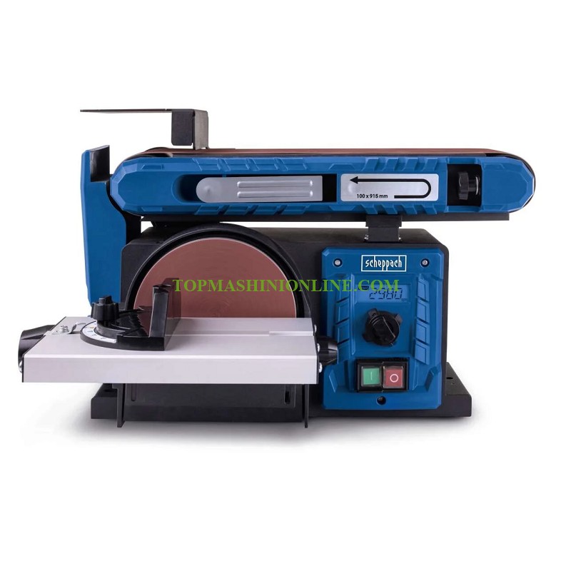 Стационарен лентов и дисков шлайф Scheppach BTS800Vario с мощност 400 W, диск за шлифоване с диаметър 150 мм на лента с размер 915х100 мм е комбиниран лентов и дисков шлайф, предназначен за прецизна обработка на дърво, пластмаса и метал. Машината е оборудвана с мощен и надежден индукционен електромотор 400 W и променлива скорост на въртене. Шлифовъчната лента с размер 915 × 100 мм и дисковият шлайф Ø150 мм позволяват гъвкава работа при оформяне, заглаждане и фино шлифоване. Алуминиевата работна маса и стабилният корпус от алуминиев лят под налягане осигуряват висока устойчивост и дълъг експлоатационен живот.