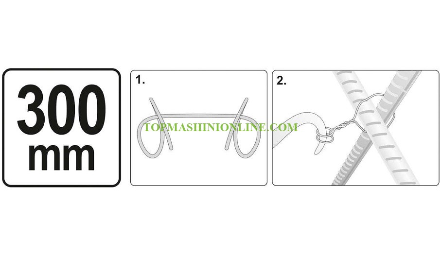 Силното издърпване на дръжката кара куката да се завърти три пъти и да усука телта прикрепена към нея. Дръжката на ключа е покрита с мека пластмаса. Снабден с практична кука за закачане на инструмента. За връзване използвайте свързваща тел с "капси" в края.