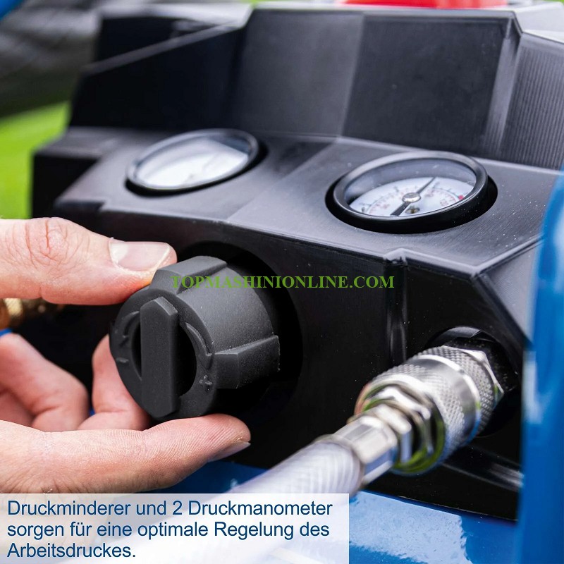 Редуктор на налягането и 2 манометъра за оптимално регулиране на работното налягане.