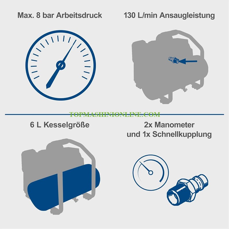 Акумулаторен компресор 6 литра Scheppach C-ACT160/6-X 20 V е мощен помощник за работа в къщата, работилницата или гаража. Благодарение на мощната си батерийна технология и компактния си дизайн, компресорът е идеален за мобилна употреба. С максимално работно налягане от 8 бара, 6-литров резервоар за сгъстен въздух и капацитет на засмукване от 130 литра в минута, C-ACT160/6-X е идеален за домашна употреба. Като част от 20-волтовата серия Scheppach IXES, всички батерии и зарядни устройства от системната гама могат да се използват с компресора. Батериите и зарядните устройства се продават отделно. C-ACT160/6-X се предлага с комплект от 11 аксесоара. Доставя се без батерии и зарядно устройство!