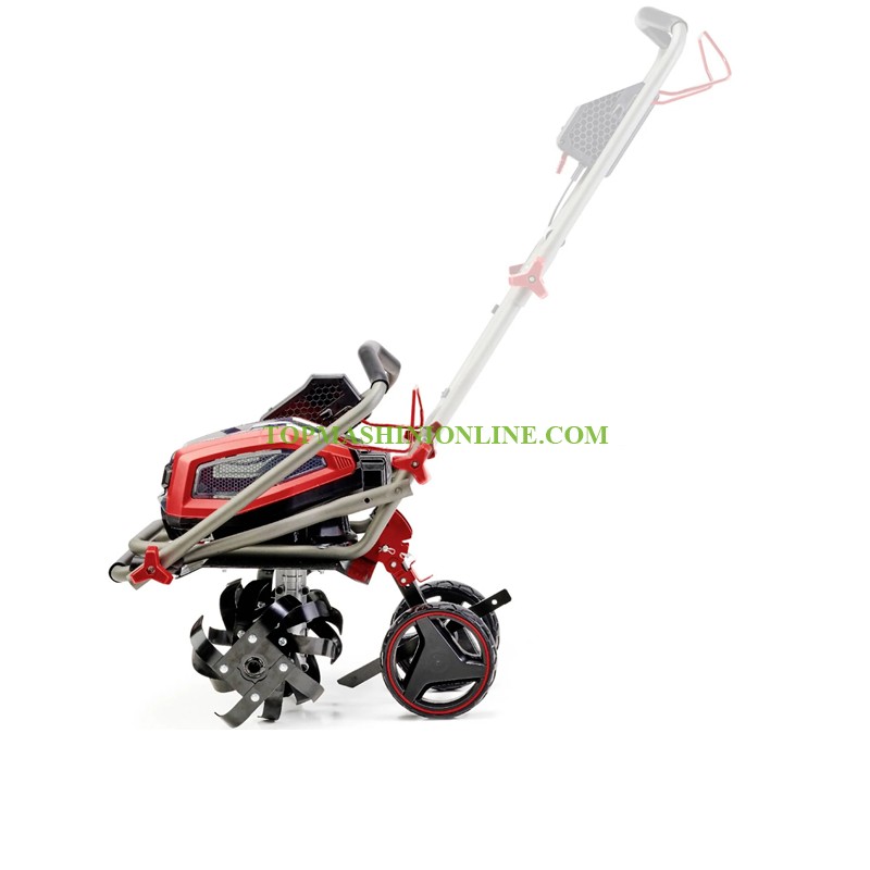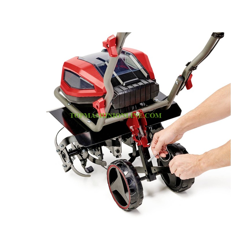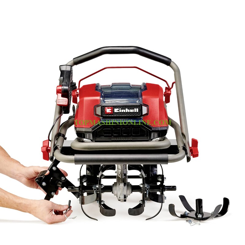 Акумулаторна фреза Einhell GP-CR 36/45 Li E BL- Solo 36 V Li-Ion с работна ширина 300-450 мм и работна дълбочина до 230 мм е мощен и удобен помощник за разрохкване на почвата в средни и големи лехи или други градински площи без тревна площ. Като член на семейството Power X-Change, всички акумулаторни батерии и зарядни устройства от семейството могат да се комбинират помежду си. Уредът се задвижва от безчетковия двигател Einhell PurePOWER. Този безчетков двигател предлага по-голяма мощност и по-дълго време за работа в сравнение със стандартните двигатели с въглеродни четки. След онлайн регистрация безчетковият двигател получава 10-годишна гаранция. Благодарение на технологията 36 V Double Twin Pack може да се използват 4 акумулаторни батерии Power X-Change. Това гарантира по-дълго време на работа и повече мощност. Четири до шест здрави метални ножа позволяват работна ширина между 30 и 45 см и работна дълбочина до 23 см. В зависимост от изискванията и желаната работна ширина, ножовете могат да се монтират или демонтират без инструменти. Съпротивителен лост помага за регулиране на работната дълбочина и контролира теглителната сила. Зеленчуковите и цветните лехи могат да бъдат удобно и безжично изкопани, разрохкани и подготвени за по-нататъшна обработка. Ергономичната, сгъваема ръкохватка с LED дисплей за нивото на заряд на батерията осигурява удобна работа. Освен това култиваторът има регулируеми във височина колела и дръжка за лесно транспортиране. Двуточковият предпазен превключвател и предпазителят на ножа осигуряват безопасността. Доставя се без батерия и зарядно устройство.