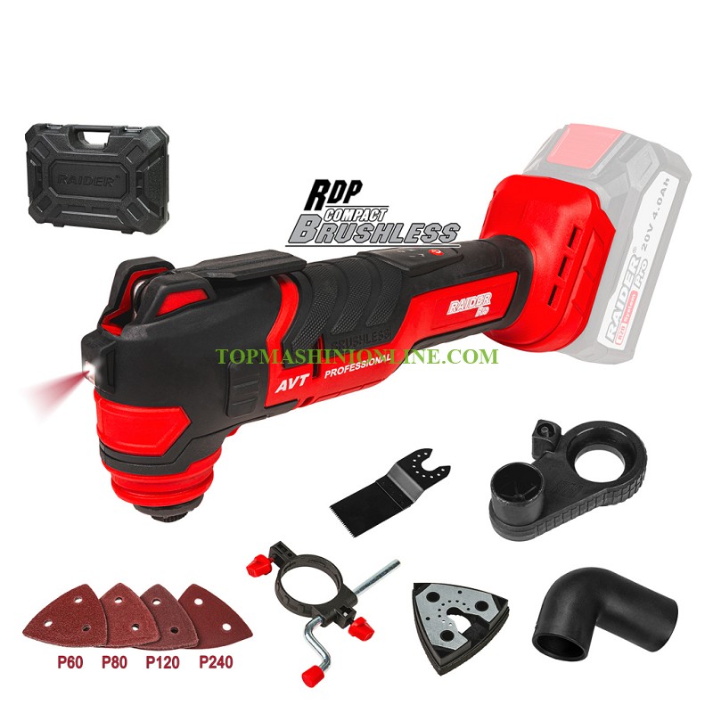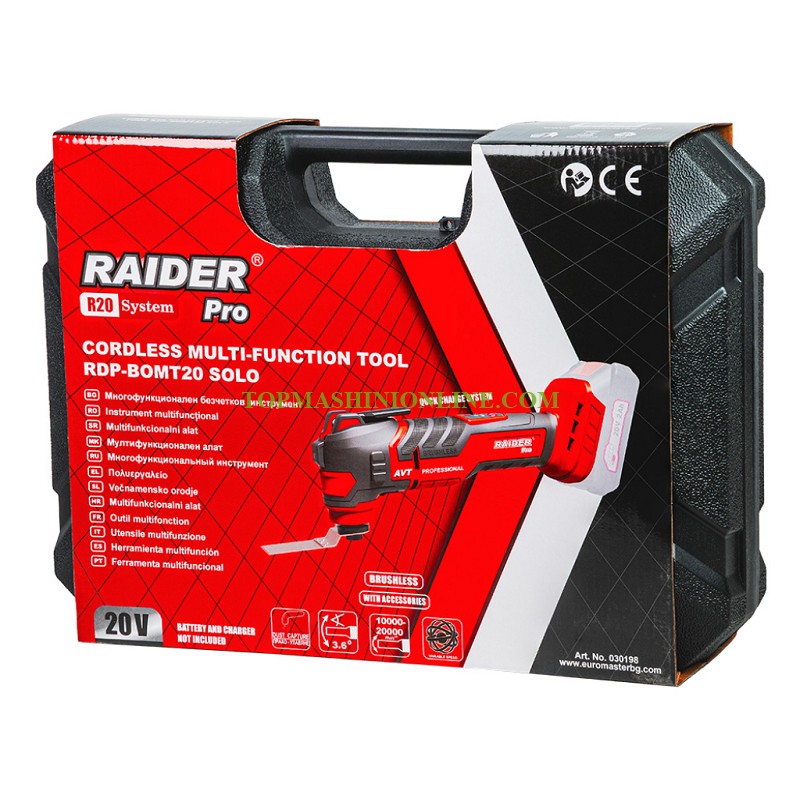 Акумулаторен мултифункционален инструмент - осцилатор Raider Pro RDP-BOMT20 Solo 20 V, 10000-20000 мин-¹, 030198 с аксесоари без батерия и зарядно устройство