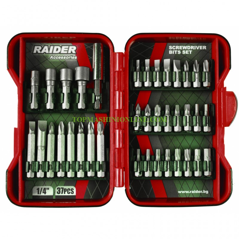 Комплект накрайници 1/4” и магнитен държач Raider 157793 37 части включва: