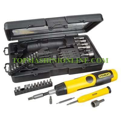 Комплект накрайници и удължители Stanley 0-63-038. 38 броя включва: самозатягаща се дръжка, отвертка с тресчотка и сменяеми накрайници. Всичко това е разположено в удобен пластмасов куфар. Чудесен комплект за всеки домашен майстор, идеален както при употреба в дома, така и за автомобила!
