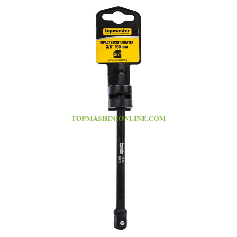 Ударен адаптер за вложки Top Master Pro 330725 с дължина 150 мм и присъединителен размер 3/8" съчетава оптимална дължина и висока здравина, което го прави универсален инструмент за разнообразни професионални задачи. Удължената конструкция осигурява по-добър достъп до дълбоко разположени крепежни елементи, без да се губи стабилност при работа. Изработен е от устойчива хром-молибденова стомана (Cr-Mo), адаптерът е проектиран за работа с висок въртящ момент и интензивно натоварване.Запазва формата и функционалността си дори при продължителна употреба. Подходящ е за стандартни 3/8" вложки и се използва с ударни винтоверти и гайковерти.