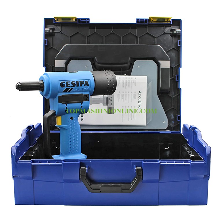 Акумулаторна нитачка за попнитове Gesipa AccuBird е професионален инструмент, предназначен за бързо, прецизно и безпроблемно занитване, идеален за промишлени, ремонтни и монтажни приложения. Захранва се от 14.4 V батерия и работи със сила на занитване 10 kN, максимален работен ход 20 мм и нитове с диаметър 2,4-5 мм. Разполага с контейнер за откъснатите опашки. Доставя се с 1 батерия 14.4 V, 2 Ah, зарядно устройство и куфар.