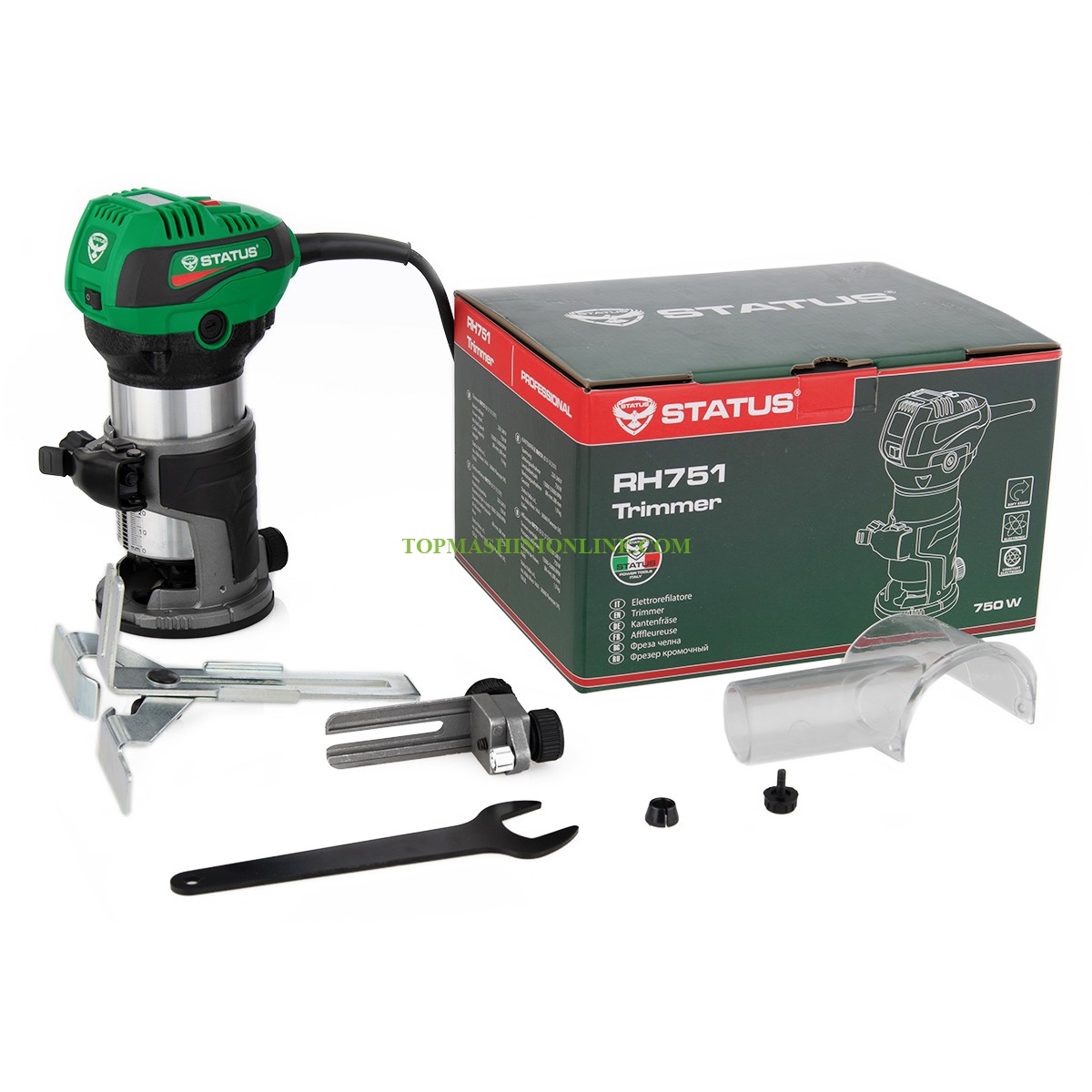 Челна фреза Status RH751 е с мощен мотор 750 W. Уредът е предназначен за фрезоване на канали, кантове, профили и надлъжни отвори върху твърда основа в дървесина, пластмаса и леки строителни материали, както и за копирно фрезоване. Електронна стабилизация на оборотите с LCD дисплей и плавен старт.