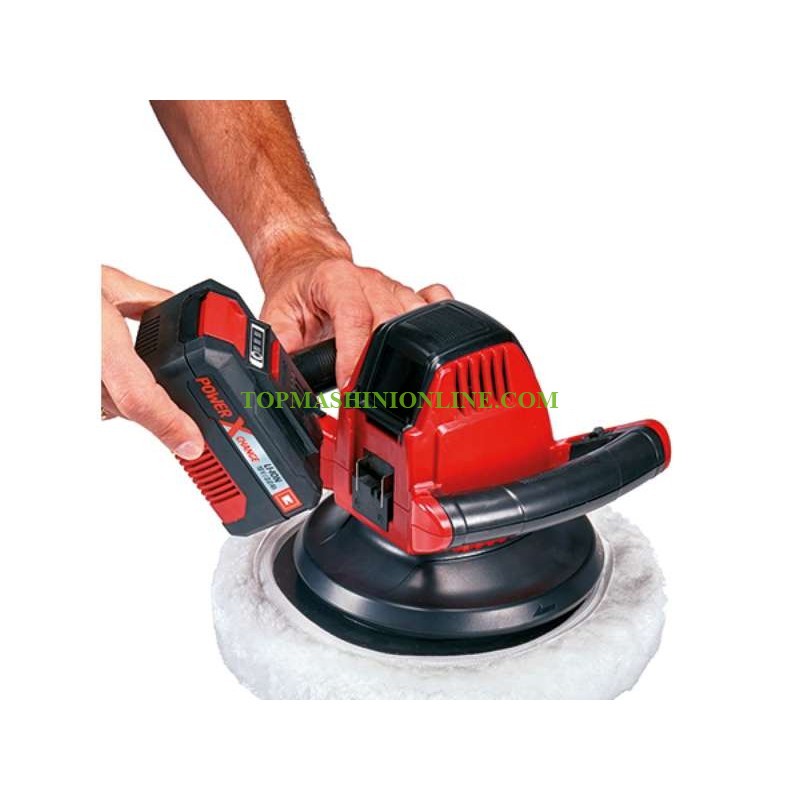 Акумулаторна полирмашина Einhell CE-CB 18/254 Li - Solo 18V e удобна и здрава полираща машина, лесна за използване с Softgrip, който допринася за комфортна работа с минимално напрежение и перфектно здраво задържане. Мощните 2500 оборота в минута и полиращият диск с диаметър 254 милиметра го правят много ефективен инструмент за полиране и разпръскване на автомобила. За безопасност има лесно достъпен ключ за включване / изключване и защита от претоварване. Първо полиращият агент се нанася върху повърхността на боята с кечето за полиране на текстил. Тогава синтетичното полиращо кече се използва за създаване на дълготраен блясък.