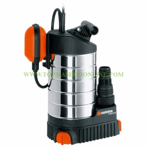 Потопяема дренажна помпа Gardena Premium 21000 inox с мощност 1000 W,напор 11 метра и дълбочина на засмукване 7 метра е най-подходящата помпа, ако ви се налага бързо и мощно да изпомпате много вода наведнъж. Тя може да се изпомпва до 21 000 л/час, чиста или леко замърсена вода, включваща частици с диаметър до 5 мм. Тъй като тя е оборудвана с регулируем превключвател в основата, е възможно равномерно засмукване до 1 мм. Почти всичката вода се източва и резултатът е подсушен под. Поплавъчният прекъсвач осигурява автоматично включване и изключване. Благодарение на държача за кабела на поплавъчния прекъсвач, нивата на включване и изключване могат да се задават прецизно. Ако е необходимо, можете също да превключвате към режим на постоянно ръчно управление на помпата посредством допълнително устройство. Благодарение на 10-метровия свързващ кабел, практичната и здрава помпа може да се използва универсално, също и на големи дълбочини. Използването на висококачествени материали отговаря на най-високите изисквания към модела Premium. Помпата има корпус от неръждаема стомана, който я прави изключително здрава и с дълъг живот. Устойчивата на износване засмукваща турбина и почти безшумният двигател, оборудван с работен кондензатор и топлинен прекъсвач и който практически не се нуждае от поддръжка, осигуряват надеждна работа на помпата. Благодарение на универсалната свръзка, към помпата могат да бъдат свързвани 13 мм (1/2 "), 16 мм (5/8 "), 19 мм (3/4 "), 25 мм (1 "), 38 мм (11/2 ") и 50 мм (2 ") маркучи.