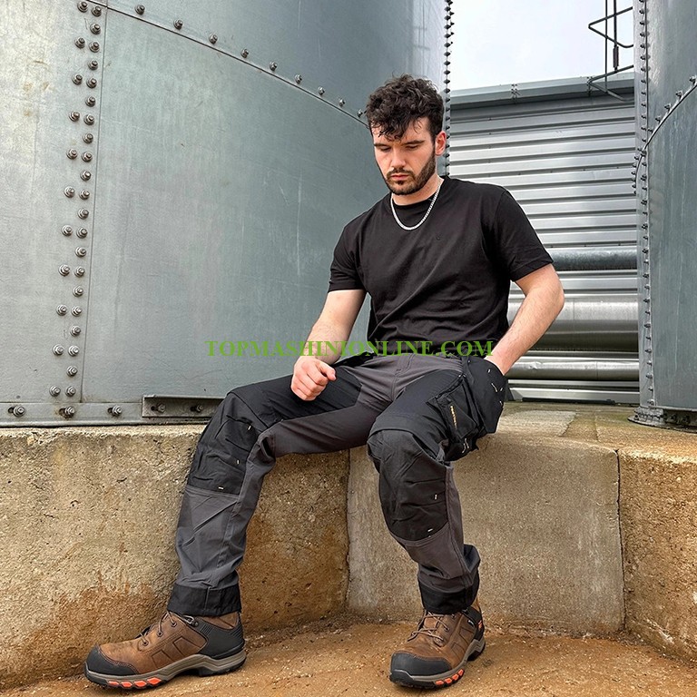 Летен работен панталон размер 36х31 DeWALT Memphis DWC147-004-3631 е лек и водоустойчив, изработен от високоефективен четирипосочно разтеглива плат, съставен от 73% вискоза, 22% найлон и 5% еластан за отличен комфорт и свобода на движение през целия работен ден. Структурата на еластичната материя позволява на панталона да се огъва естествено при навеждане, коленичене или катерене, като същевременно остава лек и удобен при продължително носене. Водоустойчивите свойства са вградени в платното, помагайки за защита от лек дъжд и влажни условия, без да се нарушава дишането или движението. Издръжливостта е подобрена с подсилване от Cordura в ключови зони с най-голямо износване, което помага на панталона да издържа на многократна употреба на обекта и абразивни условия. Разполага с множество джобове за съхранение, разположени за лесен достъп до инструменти и ежедневни принадлежности по време на работа. Специалните джобове за наколенки позволяват добавяне на допълнителна защита за коленете, което прави този панталон подходящ и за работа на нивото на пода и продължително коленичене. Размер 36х31 - обиколка на талията 91 см, външна дължина на крачола 108 см, вътрешна дължина на крачола 79 см, широчина на крачола 22.5 см.