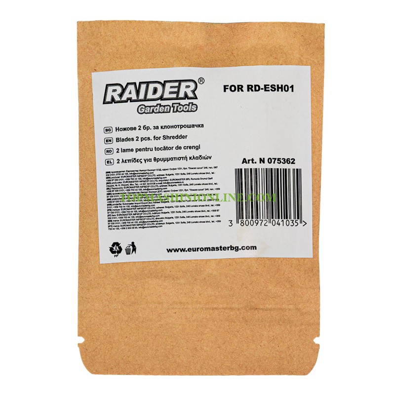Комплект ножове за дробилка за клони Raider RD-ESH03 075362 включва два ножа изработени от висококачествена стомана, които осигуряват прецизно рязане и раздробяване – подпомага ефективната работа на клонотрошачката. Предназначени за използване с електрическа клонотрошачка RD-ESH01, подходящи за раздробяване на клони и др.