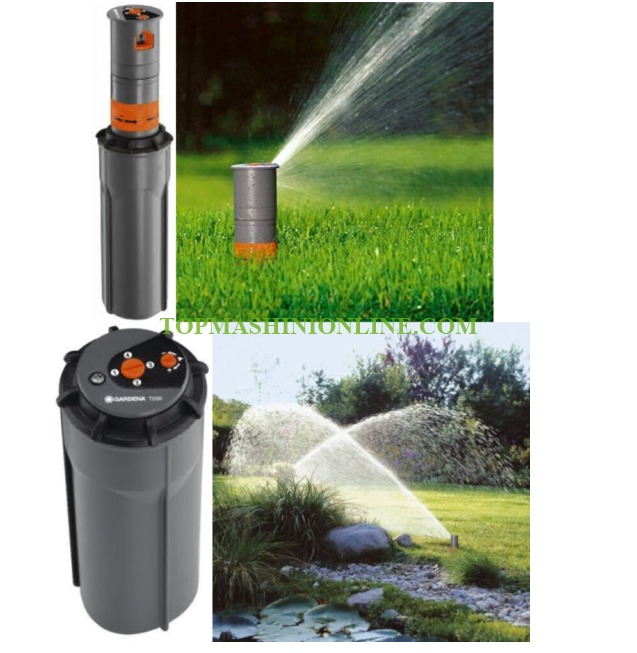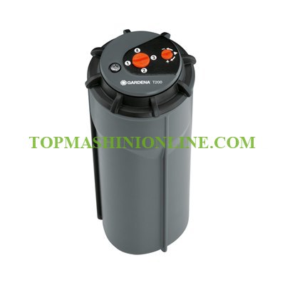 Изскачащ разпръсквач Gardena T 200 за малки площи е предназначен за напояване на средни по големина градини с площ до 200 м². Обсегът се регулира между 5 и 8 м за индивидуалния участък. Участъкът за поливане може да се регулира от разпръскващата глава плавно и без инструменти от 25° до 360°. Могат да бъдат поливани участъци, вариращи от много тесни сектори до пълен кръг. С функцията за запаметяване разпръсквачът автоматично се връща към предварително зададения участък, дори когато разпръскващата глава се завърти нарочно. За гъвкавост при поливането има 4 дюзи с различен дебит, които могат да бъдат избирани според конкретния сектор за поливане. Вграденият филтър против замърсяване позволява непрекъсната работа. Надеждната, устойчива на пясък, задвижваща турбо-предавка осигурява дълъг живот на продукта. Свързването става посредством вътрешна резба 1/2".