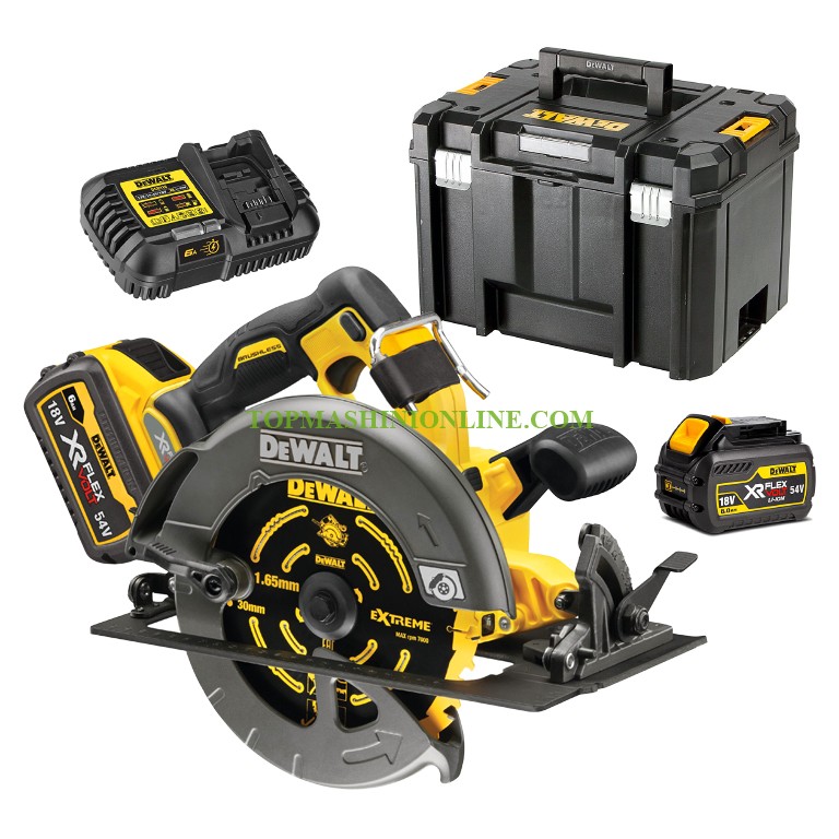 Акумулаторен безчетков ръчен циркуляр DeWALT DCS578T2 54 V, капацитет на батерията 2 Ah, диаметър на диска Ø 190 мм и дълбочина на рязане 67 мм. Вграденият вентилатор за прах и LED работната светлина помагат да се осигури оптимална видимост на линията за рязане, а отводът за прахоулавяне Airlock осигурява точка за свързване на прахоуловителя. Режещият диск с диаметър 190 мм е покрит с капак, който предпазва потребителя от повреди и наранявания. Ръчен безчетков акумулаторен циркуляр циркуляр DeWALT DCS578T2 54 V, 2 Ah е с енергийно ефективен безчетков двигател, променлива настройка на ъгъл на скосяване до 57 градуса и скала за прецизна настройка на дълбочината на рязане до 67 мм. Доставя се в куфар с 2 батерии 18/54 V, 6/2 Ah и зарядно устройство.