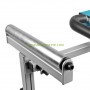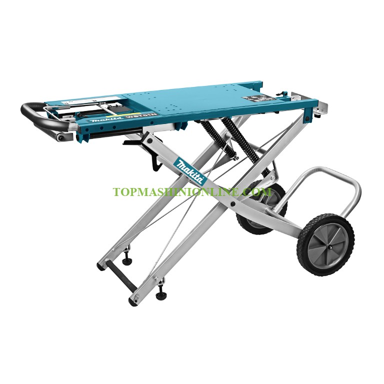 Стойка за циркулярен трион Makita WST01N с 5 позиции за регулиране на височината (максимална 840 мм) чрез пружинен механизъм. Работният плот в сгънато положение е с широчина 500 мм, а в разгънато - 1600 мм. Леката тръбна алуминиева конструкция се сгъва бързо и лесно, и е оборудвана с големи колела за максимална мобилност и съхранение. Регулируем ограничител осигурява точност при рязане на еднакви по размер детайли, а за лесното подаване на материала е предвидена ролка. Може да се съхранява вертикално с монтиран циркулярен трион. Подходяща е за всички циркулярни триони Makita с изключение на DLS600, LH1040F, LH1200FL и LH1201FL. Максимална товароносимост 100 кг.