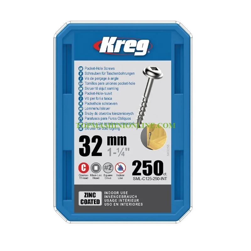 Самонарезни винтове за дърво със самонарезна глава с дължина 32 мм Kreg SML-C125-250 250 броя осигуряват адекватна защита от ръжда и са рентабилна алтернатива на нашите защитни винтове Blue-Kote™ и винтове от неръждаема стомана. Съвместими са с всички шаблони за пробиване Kreg Jig®. Имат голяма глава с фланец за сигурно задържане. Подходящи са за използване на закрито в мека дървесина, ПДЧ или МДФ.