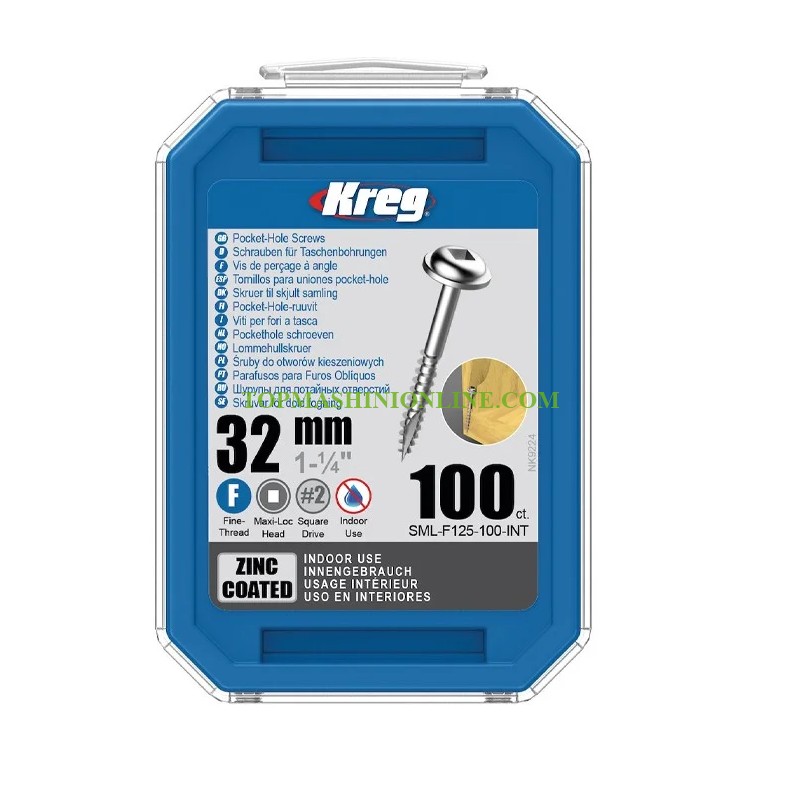 Самонарезни винтове за дърво със самонарезна глава с дължина 32 мм Kreg SML-F125-100 100 броя осигуряват адекватна защита от ръжда и са рентабилна алтернатива на нашите защитни винтове Blue-Kote™ и винтове от неръждаема стомана. Съвместими са с всички шаблони за пробиване Kreg Pocket-Hole Jigs®. Имат голяма глава с фланец за сигурно задържане. Подходящи са за използване на закрито в твърда дървесина.