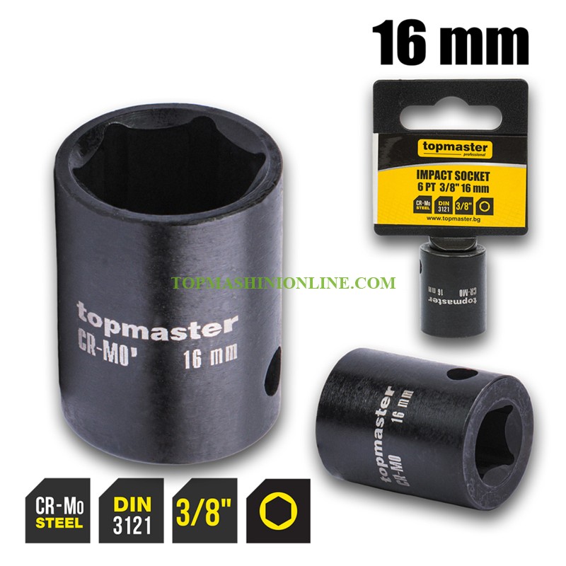 Ударна шестостенна вложка 16 мм, 3/8 Top Master Pro 330811
