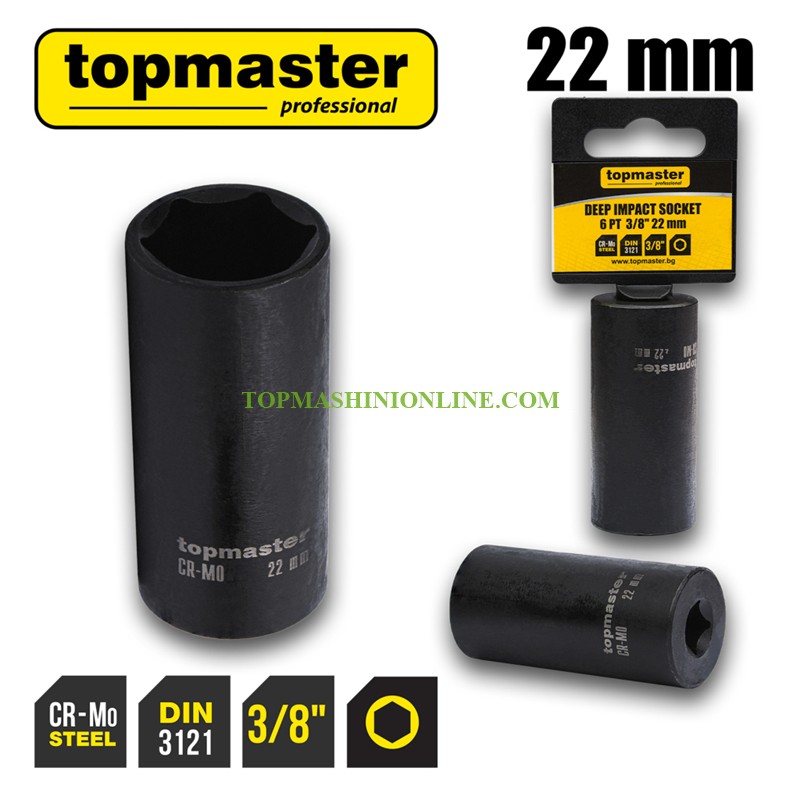Удължена ударна шестостенна вложка 22 мм, 3/8 Top Master Pro 330835