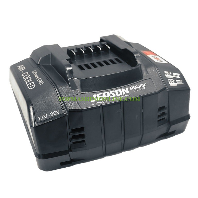 Зарядно устройство Jepson 608295EC2 за зареждане на всички Li-Ion батерии 12-36 V от серията CAS с регулиран заряден ток на батерията. Патентованата технология за зареждане AIR COOLED охлажда батерията по време на зареждане. Процесът се управлява сот процесор за щадящо зареждане и максимален брой цикли на зареждане.